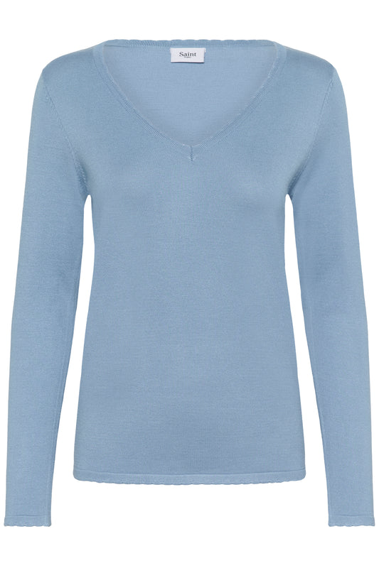 Powder blue fine knit v-neck jumper