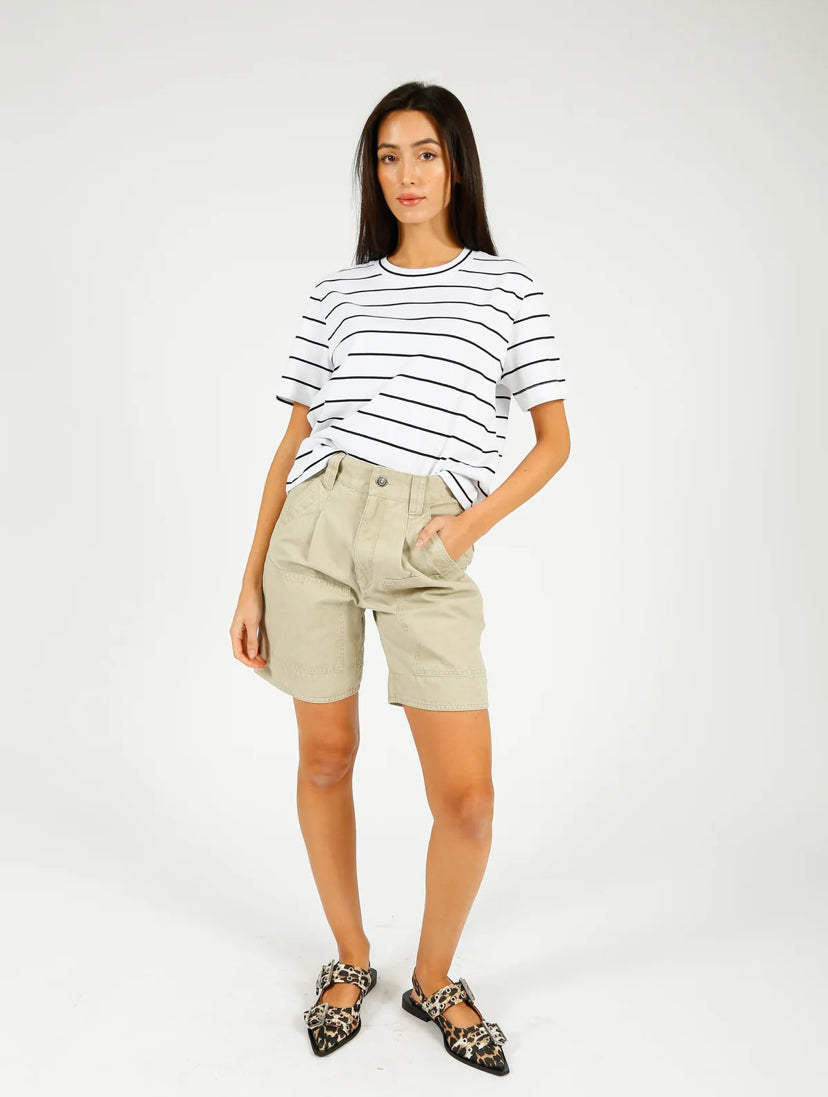 Stripes totally count as a neutral (at least in our book). This t-shirt is cut in a boxy fit from soft and breathable cotton and is a must-have no matter the season. It’ll pair well with just about anything, but we suggest elevating it by styling it with straight-leg denim, boots, and a double-breasted blazer. Why not get one in every colour…