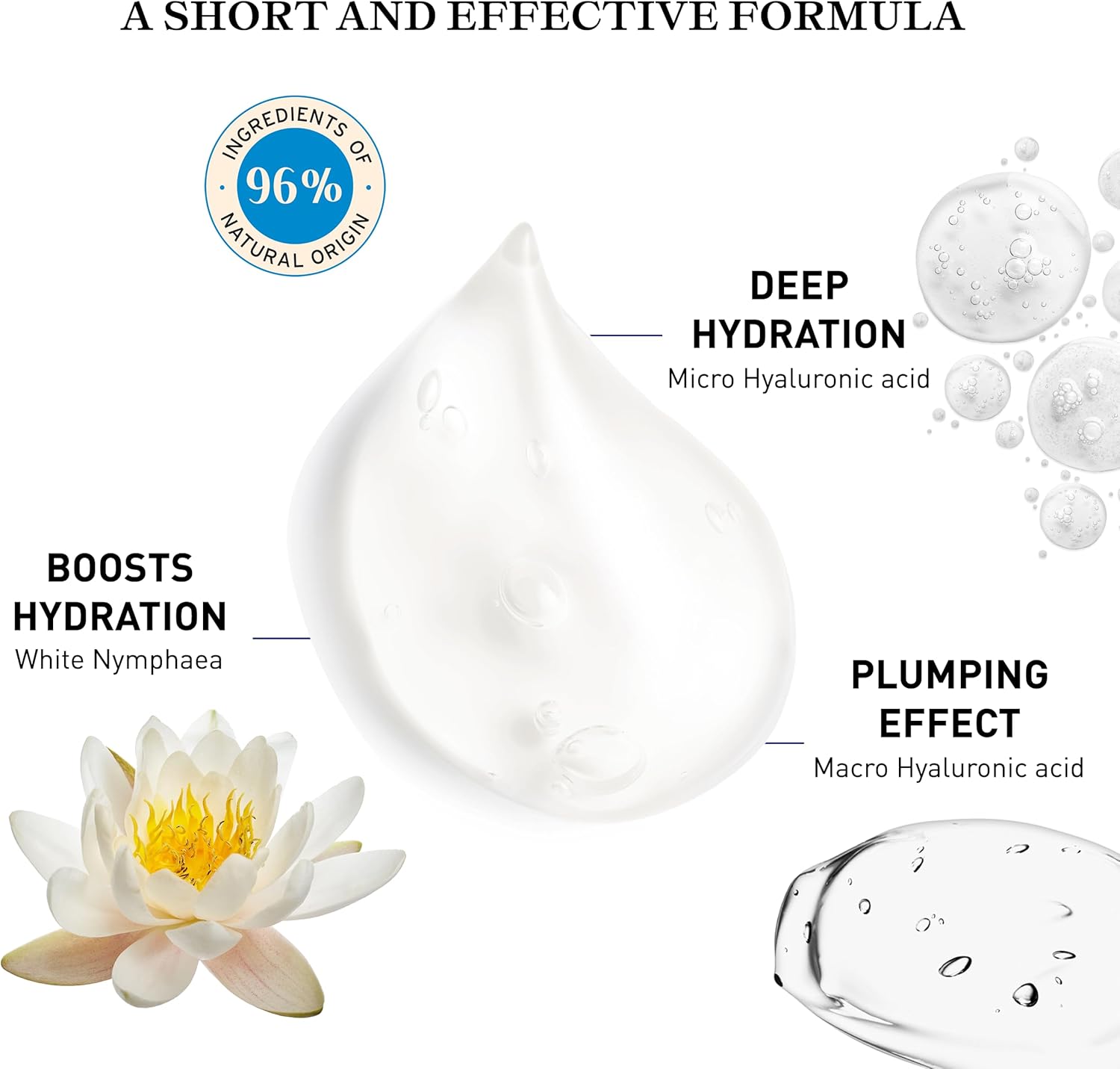 - Contains hyaluronic acid and white nymphaea extract