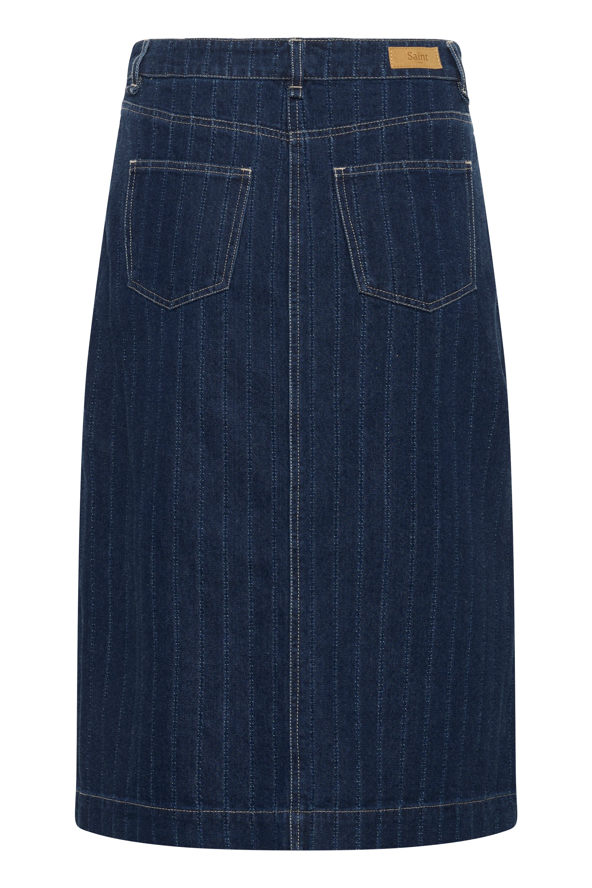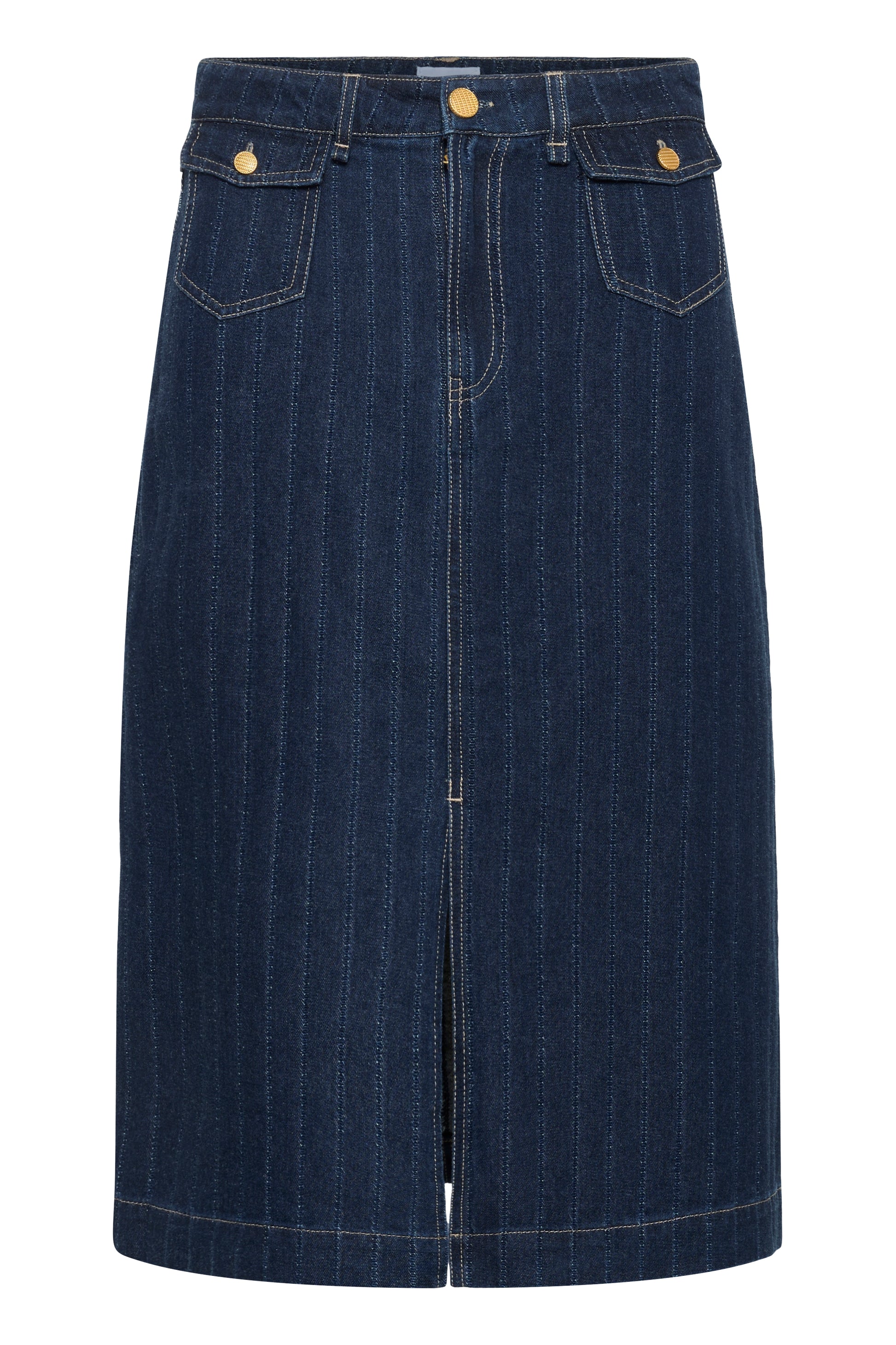 Denim midi skirt for women combines classic style with modern comfort. Features a straight fit, front slit, belt loops, and button details for versatile everyday wear. High waisted